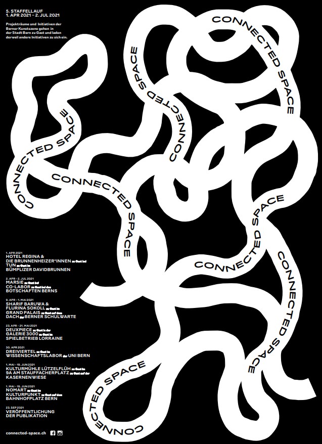Connected Space verbindet Räume der Kunstproduktion. In diesen selbstorganisierten Räumen entsteht Kunst, es wird Kunst gezeigt und über Kunst gesprochen. Von Oktober 2019 bis Juli 2021 lässt das Projekt Connected Space lokale Kunsträume und Initiativen in bislang nicht künstlerisch genutzte Orte in Bern zu Gast gehen. Dadurch entsteht im angestammten Projektraum Platz für gleich viele Initiativen aus anderen Städten der Schweiz. Auf Einladung der Berner Kunsträume erhalten diese Projekte von